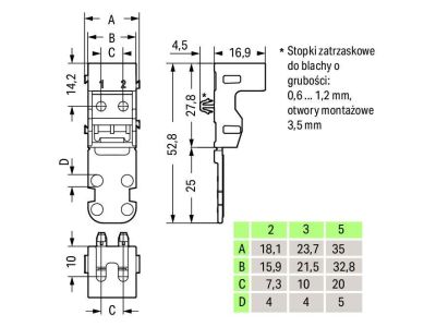 Adapter montażowy do złączek 5-przewodowych Seria 221 4mm2, czarny | 221-515/000-004 Wago
