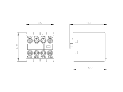 Blok styków pomocniczych 2NO i 2NC Montaż czołowy do styczników wlk. S00 Przyłącze śrubowe