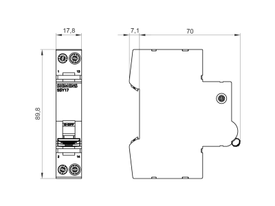 Alternatywny kod produktu: 5SY17102wyłącznik ochronny aparatowy 1-bieg. z pomocniczym wyłącznikiem prądu, zestyk zwierny charakterystyka F1 10 A AC 230 V 50/60 Hz DC 60 V Icn 3kA AC według IEC 60934