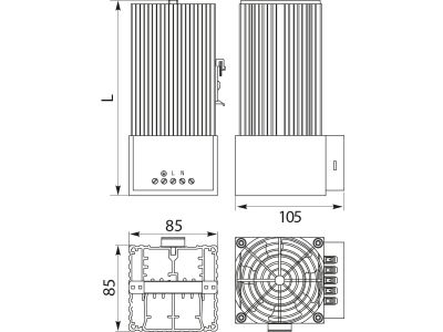 Grzałka półprzewodnikowa z wentylatorem o mocy grzewczej 500W to kompaktowe urządzenie grzewcze, które wykorzystuje technologię elementu półprzewodnikowego (najczęściej typu PTC – Positive Temperature Coefficient - wykonany z ceramiki półprzewodnikowej) w połączeniu z wentylatorem w celu efektywnego ogrzewania przestrzeni, komponentów lub obudów. Grzałki półprzewodnikowe z wentylatorem są przeznaczone do ogrzewania małych przestrzeni (np. szaf sterowniczych, skrzynek elektrycznych, niewielkich pomieszczeń technicznych) oraz do zapobiegania kondensacji wilgoci i utrzymywania stabilnej temperatury dla elektroniki lub automatyki.