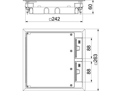 Kaseta zasilająca kwadratowa do wylewki 263x263x59, PA, stalowo-szary, 7011 GES9 55U V 7011 | 7405037 Obo Bettermann
