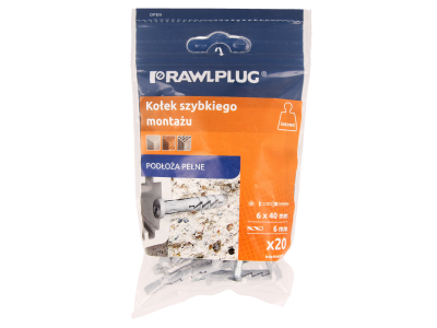 Kołek szybkiego montażu Koelner FX-06C040 o średnicy 6 mm i długości 40 mm przeznaczony jest do szybkiego i ekonomicznego montażu w podłożach pełnych i drążonych. Wyposażony w kołnierz cylindryczny, idealnie sprawdza się przy montażu cienkich elementów wykończeniowych.