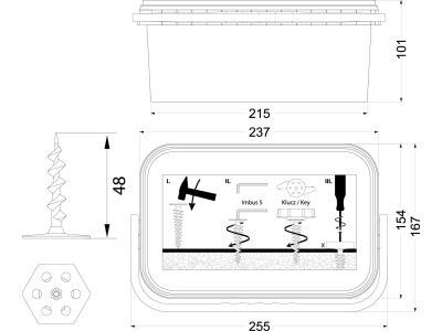 Wkręcane kołki do montażu w izolacji KWM-50 z kluczem to uniwersalne i profesjonalne zamocowanie do kotwienia w płytach styropianowych i poliuretanowych, płytach warstwowych i wełnie mineralnej twardej. Spiralny gwint zapewnia prawidłowe mocowaniewizolacji. Przeznaczone do mocowania: lamp, obudów, sygnalizatorów, detektorów, czujników, tablic informacyjnych itp. Zalety/Korzyści: łatwy i szybki montaż przy użyciu prostych narzędzi, nie jest wymagane wcześniejsze wiercenie otworu, nie jest wymagane wcześniejsze usuwanie warstwy tynku. Do wkręcania kołków użyć klucza 5 imbus.