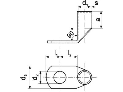Alternatywny kod produktu: KC90_12-240/1Końcówki rurowe miedziane wykorzystywane są do zakańczania żył miedzianych, używane są powszechnie w podłączaniu przewodów do szyn zbiorczych, rozdzielnic, zacisków aparatów, zwiększając przy tym bezpieczeństwo i trwałość połączenia m.in. przez zmniejszenie zjawiska przegrzewania się żył i izolacji przewodów. Końcówki rurowe miedziane płaskie typu KCS lub KC wykonane są pod kątem 45st. lub 90st. Materiał: miedź cynowana galwanicznie , niecynowane na zamówienie. Końcówki KCS wykonane po za normą DIN, końcówki KC: wymiary części rurowej wg DIN 46235
