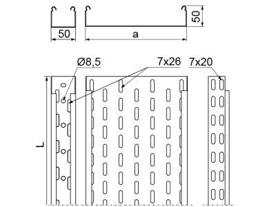 Korytko KCJ100H50/3N, gr.blachy 1,0 mm (3m)