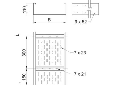 Koryto szerokorozpiętościowe, perforowane, dno rowkowane 110x600, St, FT WKSG 160 FT (6m)