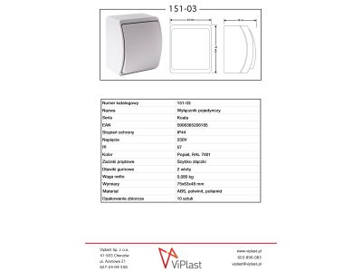 Łącznik jednobiegunowy n/t IP44 Koala popiel, VW-1 Koala | 151-03 Viplast