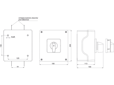 Łącznik krzywkowy 100A 0-1 4-biegunowy żółto czerwony IP65