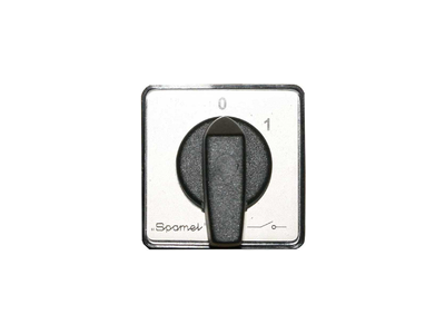 SK16-1.8364\P03 Łącznik krzywkowy 16A, Rozłącznik R-0-A (45st), 1-biegunowy, mocowany do pulpitu, czoło szare, pokrętło czarne, IP65