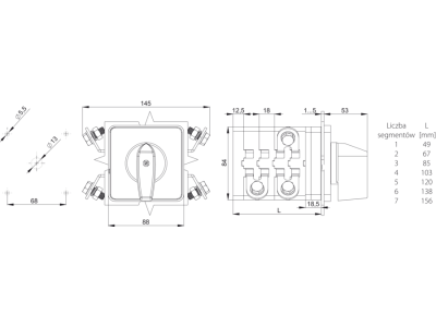 Łącznik krzywkowy 4-biegunowy 0-1 zatablicowy