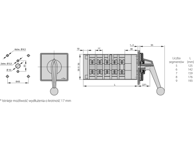 Łącznik krzywkowy 40A, przełącznik rozruchowy trójfazowy (0,Y,A), mocowanie do pulpitu, szaro-czarny