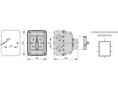 Łącznik krzywkowy 40A, rozłącznik 0-1, 3-biegunowy, w obudowie OB2 | ŁK40-2.8211\OB2 Spamel