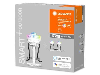 Dekoracyjne punkty świetlne do użytku na zewnątrz z technologią WiFi. Cechy produktu: Sterowanie za pomocą aplikacji LEDVANCE SMART + WiFi (z co najmniej Androidem 4.4 lub iOS 9.0). Możliwość sterowania za pomocą głosu: Asystent Google lub Amazon Alexa. Sterowanie kolorami RGB. Ściemnialne. Stopień ochrony (dots): IP65. Stopień ochrony (zasilacz): IP44. Rozszerzenie maksymalnie do 18 punktów. Korzyści ze stosowania produktu: Łatwa i szybka instalacja. Barwne oświetlenie ogrodowe i inteligentne opcje sterowania. Obszar zastosowań: Ogrody, balkony oraz inne miejsca na zewnątrz budynków. Wyposażenie / Akcesoria: Zasilacz sieciowy dostarczany wyłącznie w zestawie podstawowym. Sterowanie za pomocą aplikacji lub głosu wymaga kompatybilnego systemu sterowania domem inteligentnym. Do sterowania za pomocą aplikacji LEDVANCE SMART + WiFi wymagany jest smartfon lub tablet