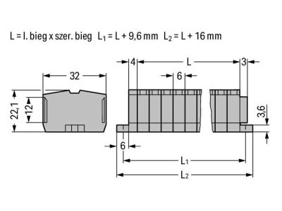 Listwa zaciskowa 2-przewodowa 8-bieg., szara