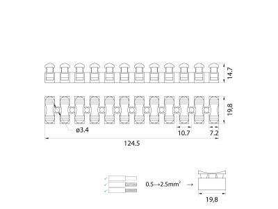 Przekrój przyłączanego przewodu jednodrutowego: 0,5..2,5 mm²