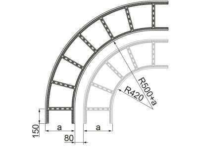 Łuk zewnętrzny drabinki 90st. LDZC100H50N, gr.blachy 2,0mm