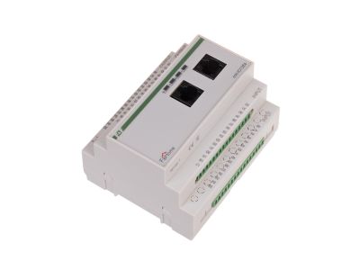 Alternatywny kod produktu: mH-IO12E6 / 5Moduł montowany jest w rozdzielni, zajmuje pole 6 modułów i zasilany jest napięciem 24V. Do wejść modułu przewodami typu UTP sprowadzane są przyciski rozlokowane na budynku. Moduł zarządza załączaniem oświetlenia lub silnikami za pośrednictwem przekaźnikowych modułów wykonawczych typu mH-R8x8, mH-R8/2, mH-RE4 lub mH-R2x16. Sterowanie odbywa się w pełni po linii niskiego napięcia 24V, co zapewnia bezpieczeństwo i możliwość dowolnego rozmieszczenia przycisków sterujących w budynku. Moduł mH-IO12E6 komunikuje się z panelami dotykowymi poprzez magistralę CAN. Dowolne wyjście modułu może być wyzwolone z poziomu paneli dotykowych poprzez wybranie konkretnego urządzenia lub sceny (grupy urządzeń). Z poziomu panelu dotykowego istnieje możliwość zaprogramowania czasowego samoczynnego załączania/wyłączania urządzeń lub grup urządzeń sterowanych z modułu wejść/wyjść.