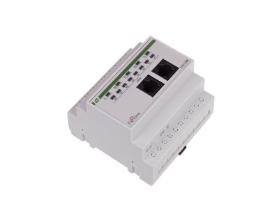 Alternatywny kod produktu: mH-V8 / 9Moduł mH-V8 jest ośmiokanałowym modułem wykonawczym sterującym pracą elektrozaworów podłączonych do wyjść modułu i przystosowany jest do pracy z modułami czujników temperatury mH-S8. Moduł montowany jest w rozdzielni i zajmuje pole 5 modułów, a napięcie zasilania modułu wynosi 230 VAC. Moduł nadaje się do sterowania elektrozaworami w obwodach ogrzewania (zazwyczaj zainstalowanymi na kolektorze) o napięciu cewki 230 VAC i działa na zasadzie włącz-wyłącz, niezależnie od głównego panelu dotykowego (stanowi autonomiczną parę z modułem mH-S8 znajdującego się na tym samym poziomie). W przypadku potrzeby stosowania podłączenia większej ilości czujników temperatury można zastosować kilka modułów mH-V8, przy czym należy pamiętać że muszą to być moduły kolejnych poziomów (mH-V8 – poziom 1, mH-V8-poziom 2, …). Wejścia / wyjścia Moduł mH-V8 oferowany jest w wykonaniu na różne poziomy, umożliwiając w ten sposób rozbudowę sieci wejść/wyjść podłączonych do systemu F&Home. W pierwszej kolejności należy instalować moduł z poziomu 1, następnie z poziomu 2, itd. Każdy z poziomów charakteryzuje się oddzielną numeracją, dzięki czemu zapewniony jest łatwiejszy montaż instalacji. Zestawienie wyjść dla modułu mH-V8 przedstawione jest w poniższej tabeli. Zasada działania Moduł wykonawczy mH-V8 sterowany jest poprzez sieć CAN z modułu czujnikowego mH-S8 znajdującego się na tym samym poziomie. W zależności od ustalonego programu pracy oraz wskazania temperatury na danym wejściu czujnikowym wyzwolone będzie odpowiednie wyjście modułu mH-V8. Para modułów mH-S8 – mH-V8 działa niezależnie od głównego panelu dotykowego, który służy tylko do ustalenia programu pracy. Uszkodzenie lub brak panelu dotykowego nie przerywa pracy układu regulacji temperatury.