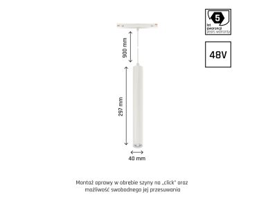 Oprawa LED HANGIT zwis na szynoprzewód 40x297 (935mm kabel) 12W 25st biały 5 lat gw. DALI system SH | WLD+40035_DALI Wojnarowscy