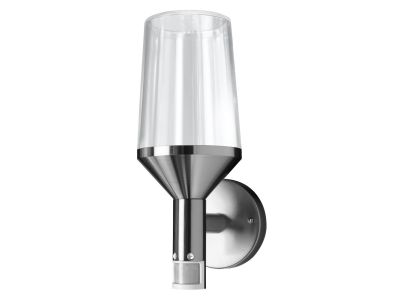 Oprawy oświetleniowe ze stali nierdzewnej ze szklanym kloszem. Cechy produktu: Dostępne w wersji z czujnikiem podczerwieni lub bez. Obudowa ze stali nierdzewnej. Stopień ochrony: IP44. Korzyści ze stosowania produktu: Wysoka uniwersalność wyboru źródła światła dzięki trzonkowi E27. Łatwa i szybka instalacja. Obszar zastosowań: Elewacje budynków. Oświetlenie awaryjne. Patia, balkony. Oświetlenie ścieżek dla pieszych. Podjazdy. Wyposażenie / Akcesoria: Kompletne akcesoria do montażu i podłączenia w zestawie. Źródła światła nie są dostarczane w zestawie