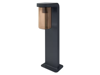 Współczesne oprawy aluminiowe z kloszem z bursztynowego lub przezroczystego szkła. Cechy produktu: Oświetlenie bezpośrednie. Materiał osłony: szkło. Kolor osłony: bursztynowy lub przezroczysty. Materiał obudowy: aluminium. Kolor obudowy: RAL 7016. Stopień ochrony: IP44. Korzyści ze stosowania produktu: Wysoka uniwersalność wyboru źródła światła dzięki trzonkowi E27. Łatwa i szybka instalacja. Obszar zastosowań: Elewacje budynków. Patia, balkony. Oświetlenie ścieżek dla pieszych. Podjazdy. Wyposażenie / Akcesoria: Kompletne akcesoria do montażu i podłączenia w zestawie. Źródła światła nie są dostarczane w zestawie