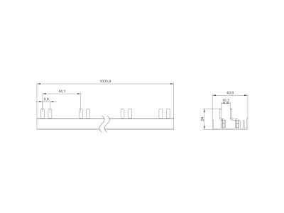 Pin Busbar 10mm2, 1p/N AFD+Comp+AS1000mm
