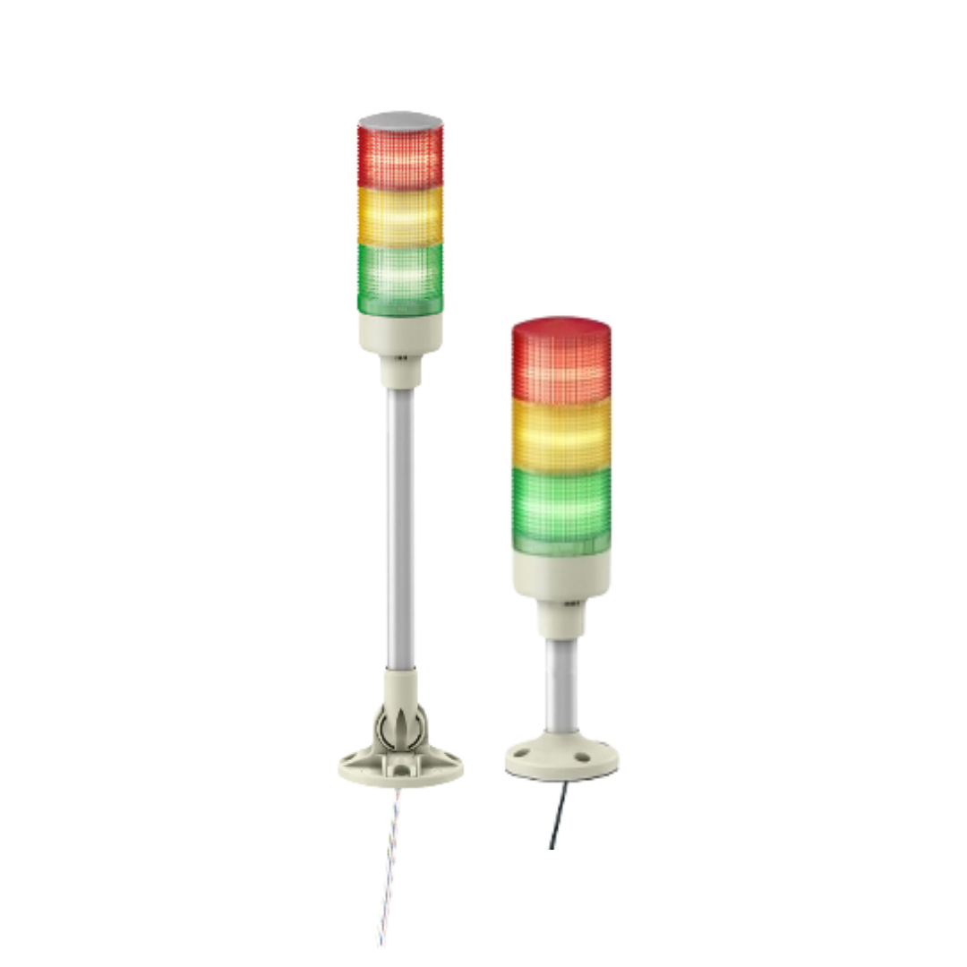 kolumny sygnalizacyjne Ø 60 mm z technologią LED, łatwe w montażu, z jasną sygnalizacją i zintegrowanym brzęczykiem 85 dB. Dostępne w wersjach 1–4-warstwowych, zgodne z normami CE, EAC i CCC.