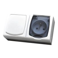 Zestaw hermetyczny natynkowy IP44: gniazdo pojedyncze z uziemieniem 2P+Z + łącznik jednobiegunowy, białe, Hermes | 0327-12 Elektro-Plast Nasielsk