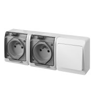 Zestaw hermetyczny natynkowy IP44: Gniazdo podwójne z uziemieniem 2x2P+Z + łącznik jednobiegunowy, dymne+białe, Hermes | 0327-21 Elektro-Plast Nasielsk