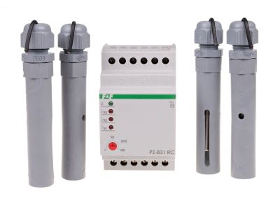 Przekaźniki PZ-831 RC służą do wykrywania obecności cieczy przewodzących prąd elektryczny na poziomach zamontowania sond zalania. Pozwalają na utrzymywanie stanów minimum i maksimum kontrolowanej cieczy w zakresie wyznaczonym przez użytkownika.