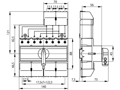 Przełącznik źródła zasilania, 4-biegunowy, 80A, z pokrętłem na rozłączniku