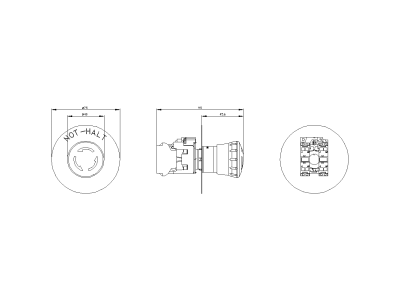 Przycisk bezpiecz. SIRIUS ACT fi22 metal połysk, fi40 obrot. czerwony 2NC, etykieta (NOT-HALT)