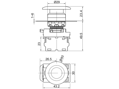 Przycisk grzybkowy, zielony 1×NO, 5A/230V AC-15, 40mm, IP65