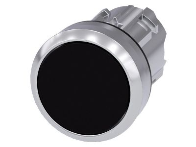 Przycisk płaski z samopowrotem, 22mm, okrągły, metal błyszczący, czarny, SIRIUS ACT