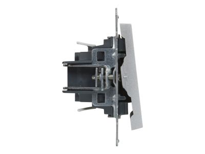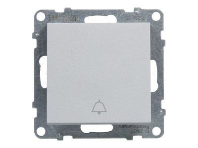 Przycisk pojedynczy z symbolem dzwonka - 6 A - 250 V - zaciski automatyczne. Przycisk służy do włączania i wyłączania oświetlenia, dzwonka i timera. Mechanizm wymaga dodania ramki. Kolor Aluminium.