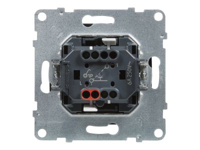 Przycisk pojedynczy z symbolem dzwonka - 6 A - 250 V - zaciski automatyczne. Przycisk służy do włączania i wyłączania oświetlenia, dzwonka i timera. Mechanizm wymaga dodania ramki. Kolor Czarny .