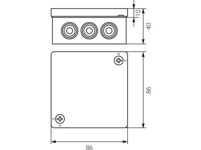 Puszka n/t 86x86x40mm IP55 12-wl 2wkr Osłabienia do dławnic z gwintem biała VP 023-01 długość 86mm x szerokość 86mm x wysokość 40mm. Waga 0,047kg