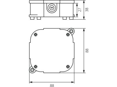 Puszka n/t 88x88x40mm IP44 400V z zac. biała VP 074-51 długość 88mm x szerokość 88mm x wysokość 38mm. Waga 0,098kg