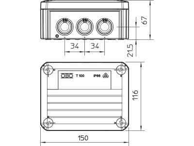 Puszka odgałęźna wprowadzeniami 150x116x67, PP, czysta biel, 9010 T 100 RW | 2007533 Obo Bettermann