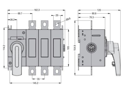 Rozłącznik izolacyjny 3P 250A bez pokrętła (Ith/AC21A), 250A (Ie/AC22A i AC23A)