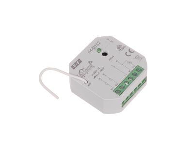 Alternatywny kod produktu: rH-D1S2 LRrH-D1S2 LR jest połączeniem ściemniacza i dwóch wejść stykowych. Moduł steruje odbiornikiem AC 230V. Komunikacja z serwerem odbywa się drogą radiową. Moduł posiada dwa wejścia do podłączenia dwóch monostabilnych styków bezpotencjałowych oraz jedno wejście do podłączenia odbiornika. Obciążenie wejścia mocy może być rezystancyjne (lampy żarowe), indukcyjne (silniki AC i transformatory) i pojemnościowe (lampy jarzeniowe).