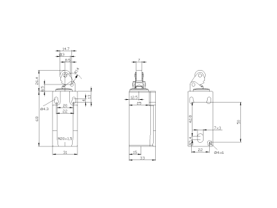 - Położenie elementu przełączającego Popychacz z rolką równoległą