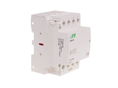 Stopień ochrony IP20 Stycznik modułowy. Prąd 40 A. Napięcie 230 V AC. Moc łączeniowa AC1 16 kW. Moc łączeniowa AC3 5,5 kW.