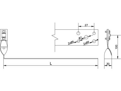 - Wysokość konstrukcyjna uchwytu przewodu 100 mm
