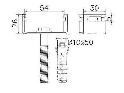 Uchwyt do bednarki z kołkiem rozporowym, B do 50mm, miedź/mosiądz