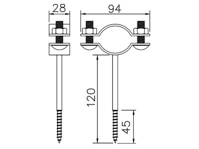 Uchwyt mocujący – obejma fi30-45mm z gwintem do ściany L=12cm Fe/Zn12/C/T2, ocynk