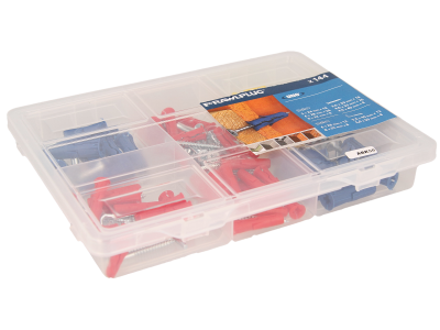 UNO® zestaw kołków uniwersalnych 5×24 mm, 6×28 mm i 8×32 mm z wkrętami i hakami (144 el.)