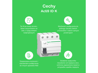 Wyłącznik różnicowoprądowy 4P 40A 30mA typ AC, IDK-40-4-30-AC, Acti 9 | A9Z05440 Schneider Electric