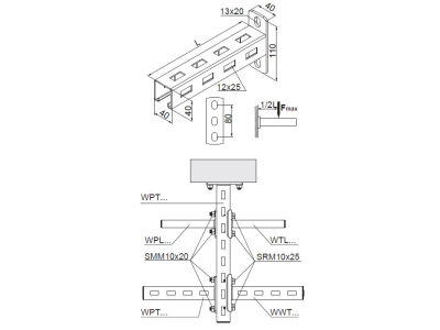 Opakowanie zbiorcze zawiera 8 szt.Alternatywny kod produktu: WPT800Podwieszanie tras kablowych, oraz mocowanie koryt, drabin kablowych,rur i innych elementów, szczególnie tam gdzie jest mało miejsca na trasy kablowe (np. nad sufitami podwieszanymi). Możliwość zastosowania jako wspornika sufitowego.