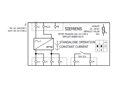 Alternatywny kod produktu: 6EP33378SB000AY0SITOP PSU8200 24 V/40 A stabilized power supply input: 120/230 V AC output: 24 V DC/40 A The SITOP modular single-phase power supplies are technology power supplies for demanding solutions and provide maximum functionality for use in complex systems and machines. The wide-range input enables connection to any power network in the world and ensures high reliability even in the case of large voltage fluctuations. The Power Boost function supplies up to three times the nominal current over short durations. If overload occurs, there is a choice between constant current or latching disconnection. The very high degree of efficiency minimizes energy consumption and heat generation in the control cabinet, and the compact metal enclosure also saves space. To further increase 24 V availability, the SITOP modular power supplies can be combined with buffer, DC UPS, redundancy and selectivity modules. Regardless of the industry or requirements, Siemens offers reliable and efficient power supplies for every plant.